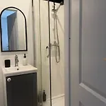 This apartment is furnished with a sofa set featuring an ironing set, as well as modern facilities like a flat-screen TV with satellite channels. A bathroom is fitted with a separate toilet and a shower, along with a hair dryer and towels, which are also provided.